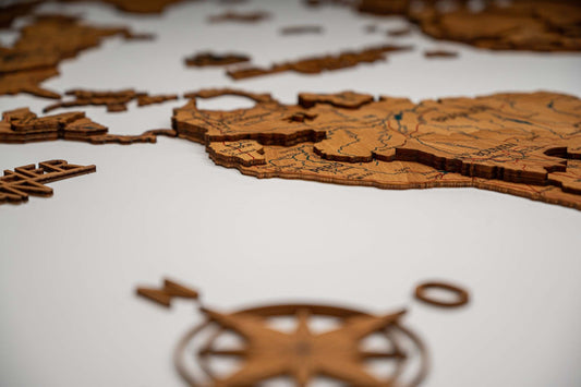 Unsere Weltkarten lassen sich mit Hilfe einer Schablone leicht an der Wand anbringen.
